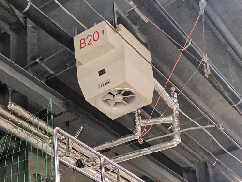 大空间吊装热水(蒸汽型)暖风机,吊挂在棚下使用,适合厂房、大型场馆、候机(车)大厅等大空间场所使用。